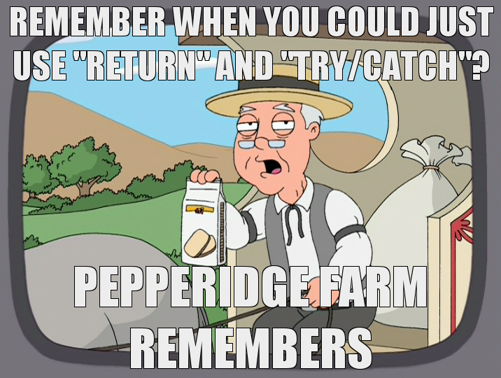 });As JavaScript developers, we now have two parallel systems – sync and async – that we have to keep straight in our heads. And this gets even worse as our control flow becomes more complex, and we need to reach for APIs like Promise.all() and Promise.resolve(). Or maybe we just opt for one of the many helper libraries and pray we can understand the documentation.